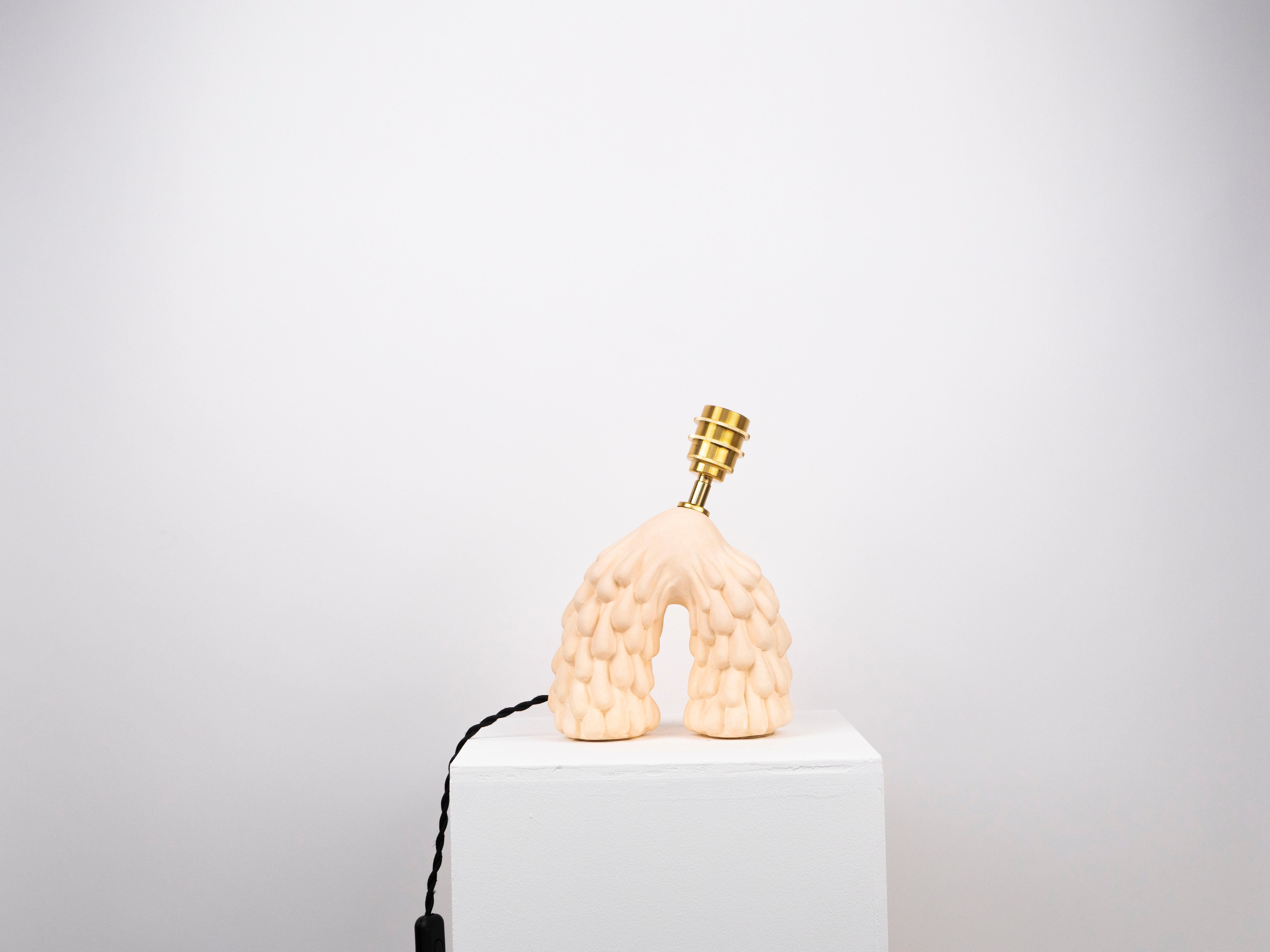 Cream lamp base with a matte finish paired with a matching Off-White wool lampshade