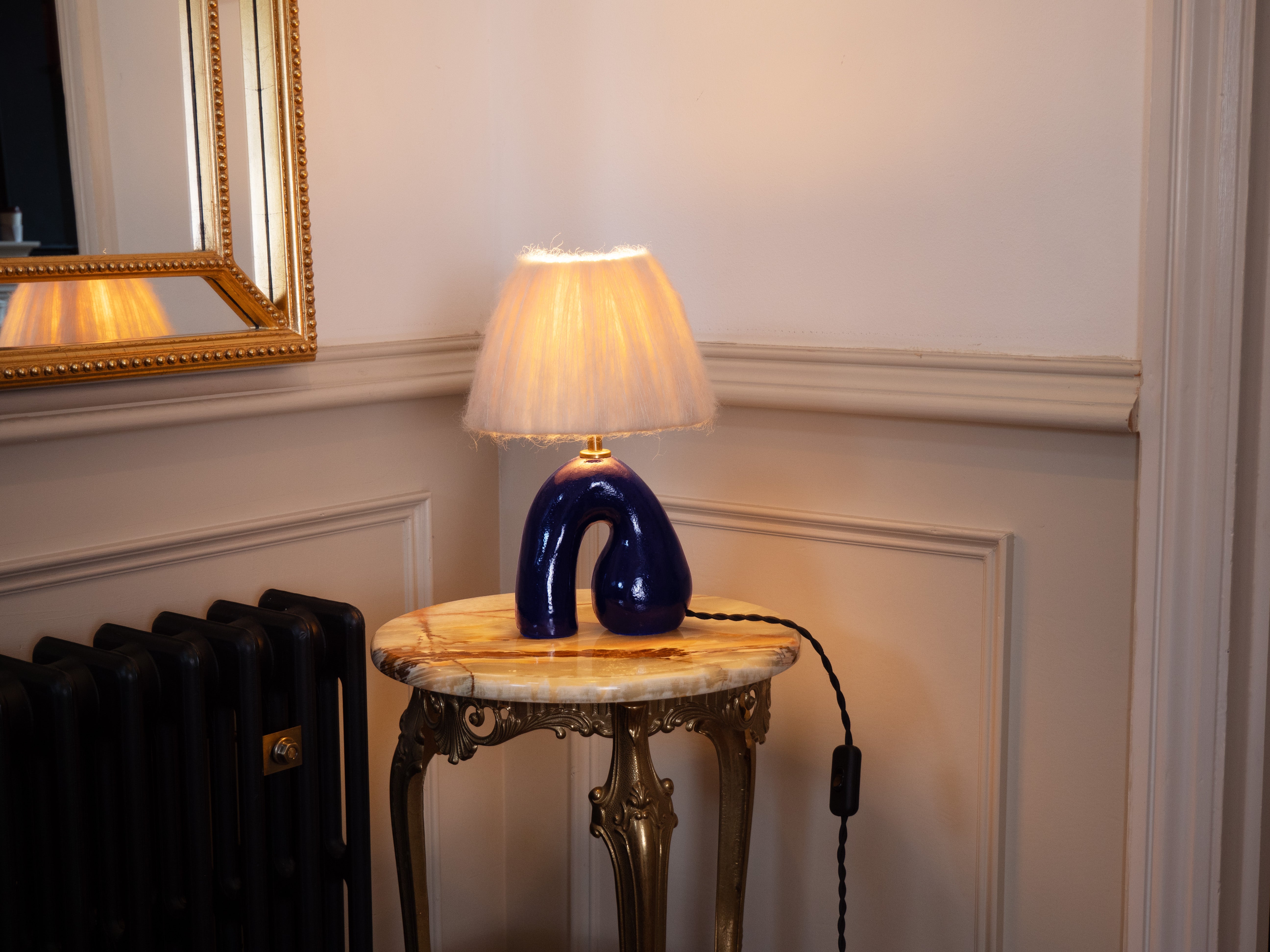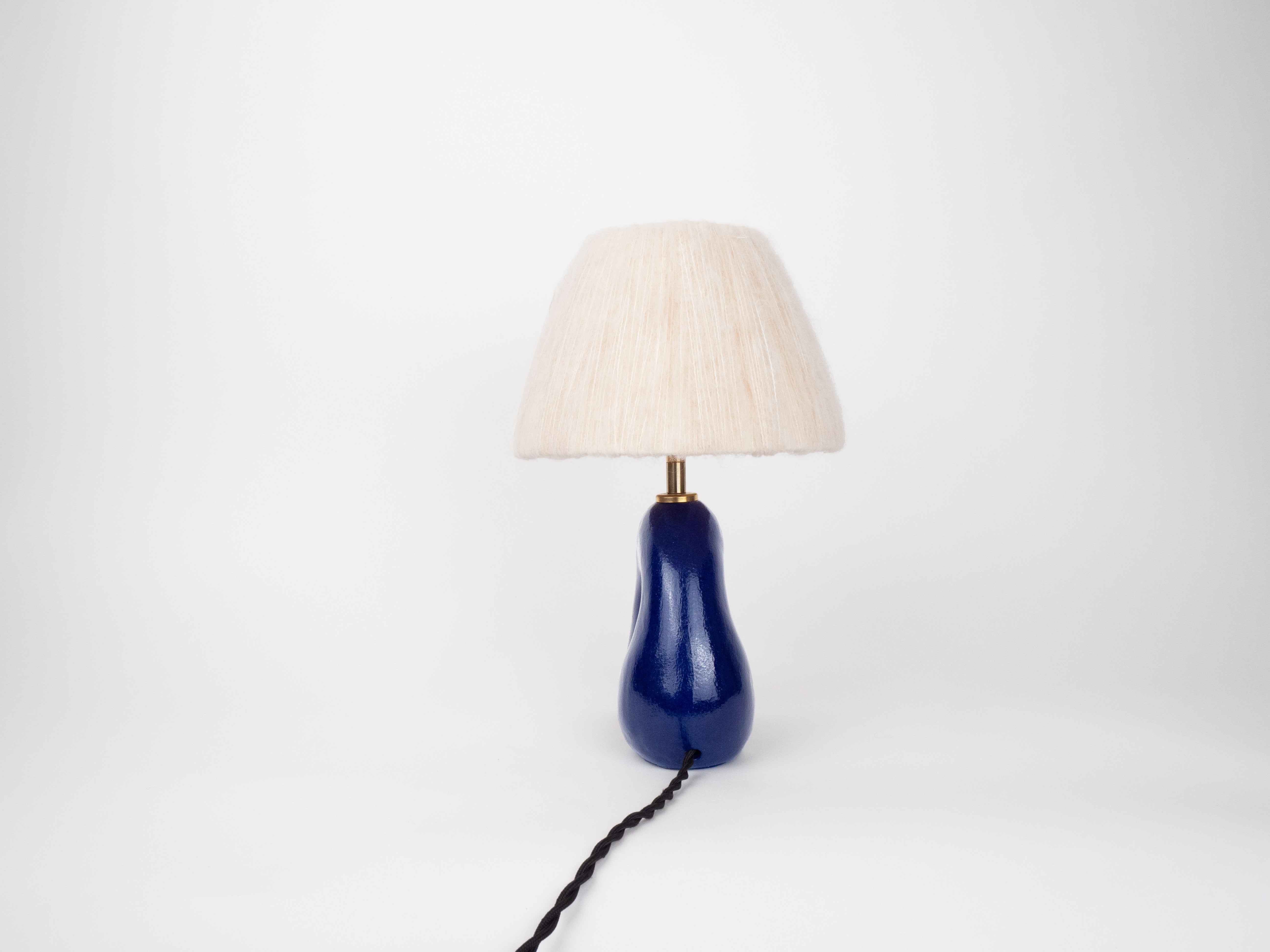 Dark Blue lamp base with a glossy finish paired with an Off-White wool shade