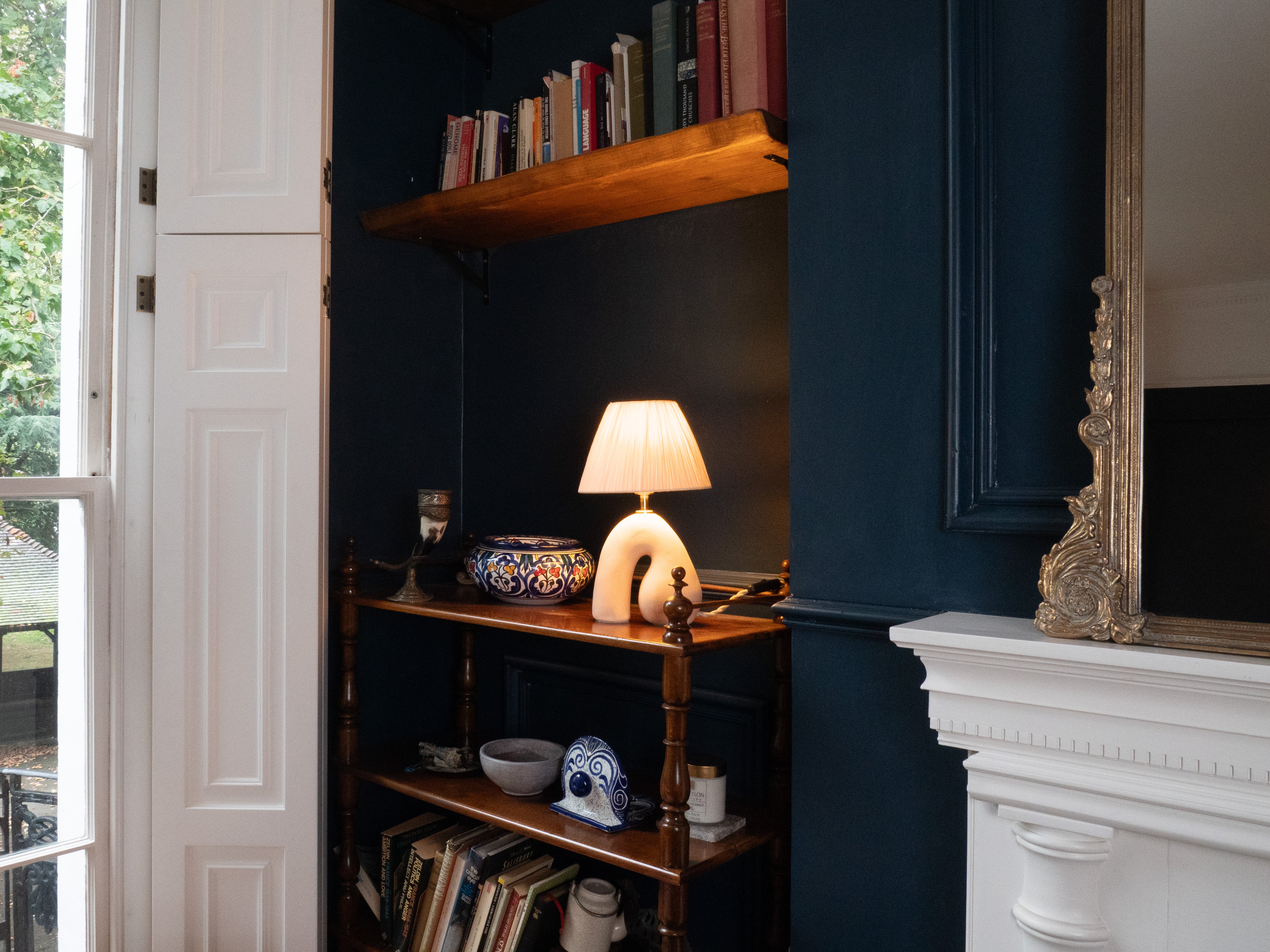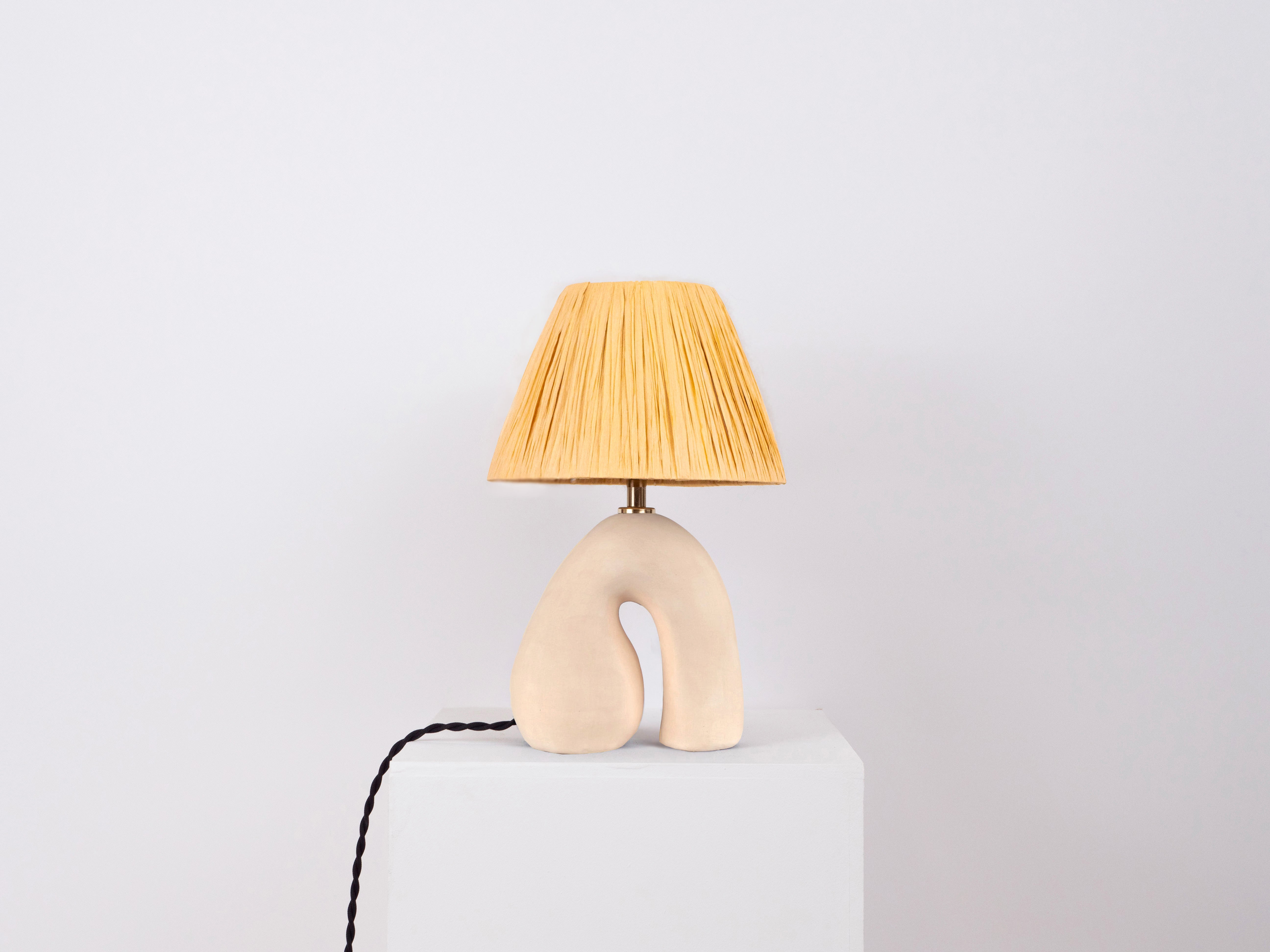 Cream lamp base with a matte finish paired with a variety of lampshades