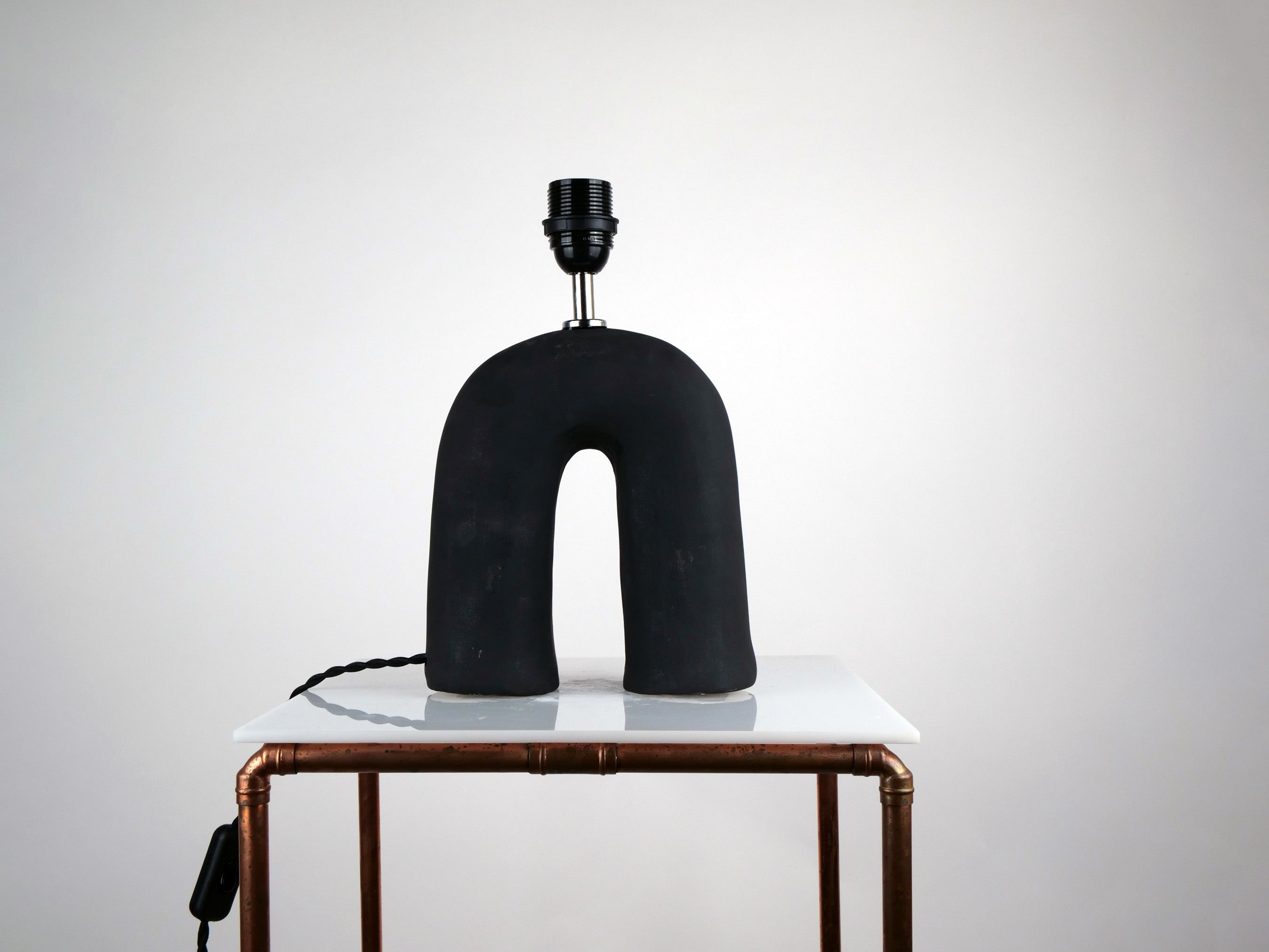 Black lamp base with a matte finish paired with a variety of lampshades